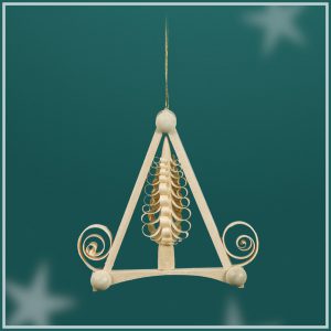 Aus Ihrem wunderbarenWeihnachtsstrauß können sie mit tollem Baumbehang noch mehr machen. Dieser schöne Spanbaum hat eine Länge vom 6 cm, ist komplett aus Lindenholz gefertigt und kann mit einem Faden am Baum aufgehängt werden. Die Spanbäume werden alle einzeln per Hand mit einem scharfen Eisen gestochen. Mit dem Eisen werden von einem Holzstab Späne abgezogen, bis sie sich wie Locken links und rechts am Holzstab aufstellen.
