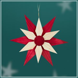 Aus Ihrem wunderbaren Weihnachtsstrauß können sie mit tollem Baumbehang noch mehr machen. Dieser schöne Holzstern hat eine Durchmesser vom 13 cm, ist komplett aus Lindenholz gefertigt und kann mit einem Faden am Baum aufgehängt werden. Am Mittelteil sind 4 große Spanbaumecken und 4 kleine Spanbäume befestigt. Die Spanbäume werden alle einzeln per Hand mit einem scharfen Eisen gestochen. Mit dem Eisen werden von einem Holzstab Späne abgezogen, bis sie sich wie Locken am Holzstab aufstellen.