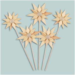 Aus Ihren wun­der­ba­ren Früh­lings­strauß kön­nen sie mit tol­lem Baum­be­hang noch mehr machen. Die­se schö­nen bun­ten Holz­blu­men sind kom­plett aus Kie­fern­holz gefer­tigt und haben einen Faden zum Auf­hän­gen an einem Gesteck oder Oster­strauß. Die Blu­men sind in rot, oran­ge, gelb, grün und blau erhält­lich und haben einen Durch­mes­ser von 5  cm.