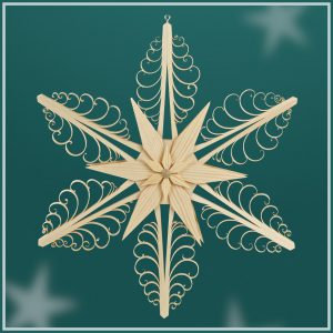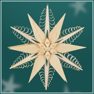 Dieser schöne Spanstern ist der perfekte Schmuck für Ihre Fenster. Er hat einen Durchmesser vom 32 cm und ist komplett aus Lindenholz gefertigt. In der Mitte hat er eine Nabe mit kleinen Spanbäumen, an ihr verbinden sich alle 6 Spanbäume zum Stern. Die Spanbäume werden alle einzeln per Hand mit einem scharfen Eisen gestochen.Mit dem scharfen Eisen werden von einem Holzstab Späne abgezogen, bis sie sich wie Locken am Holzstab aufstellen.